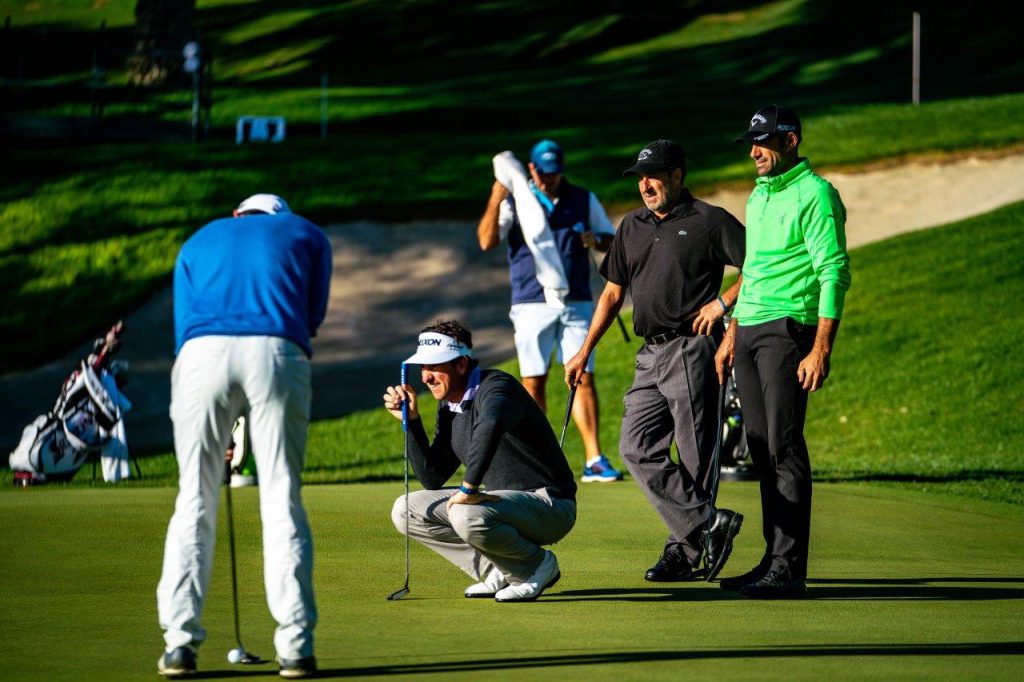 Jose María Olazábal, Quirós y Fernández-Castaño en el putting green con Molinari. Foto @RC Vaderrama