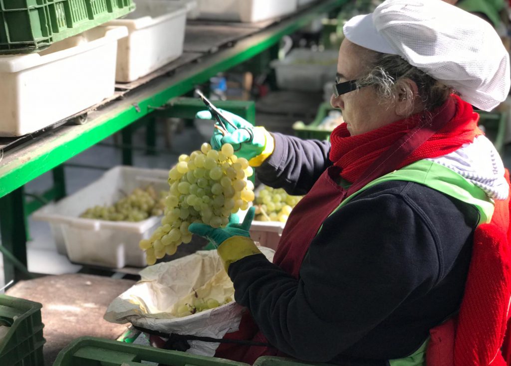Así de sonrientes nos recibieron en el almacén de Monforte del Cid, donde se prepara la uva y se etiqueta para salir hacia los mercados de toda España.